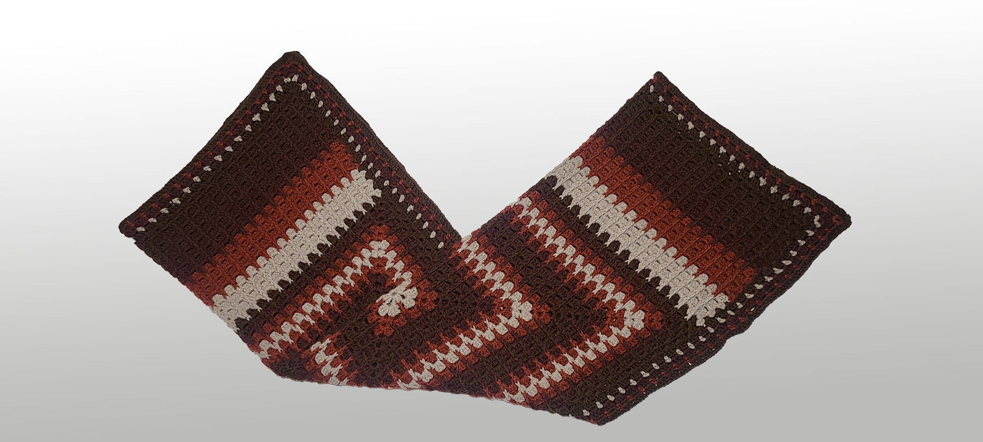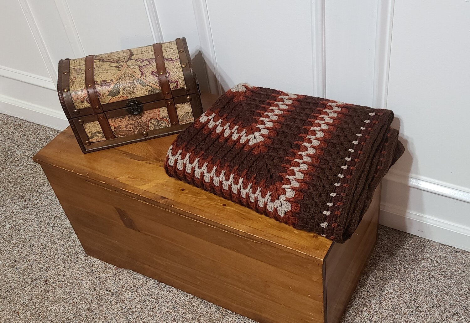 Hand crocheted in 100% Superwash Bulky Wool, this one of a kind creation results in a thick squishy texture.